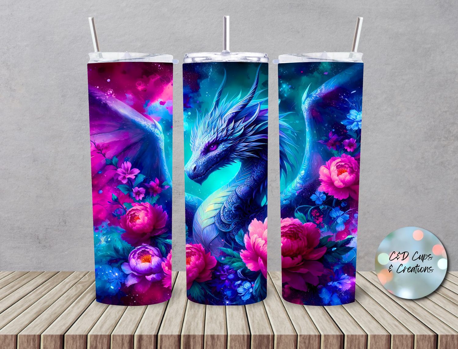 Blue Dragon with Roses 20oz double wall insulated Stainless Steel Tumbler. Can hold hot or cold beverages for hours. All Tumblers are handmade to order. Hand wash only!
